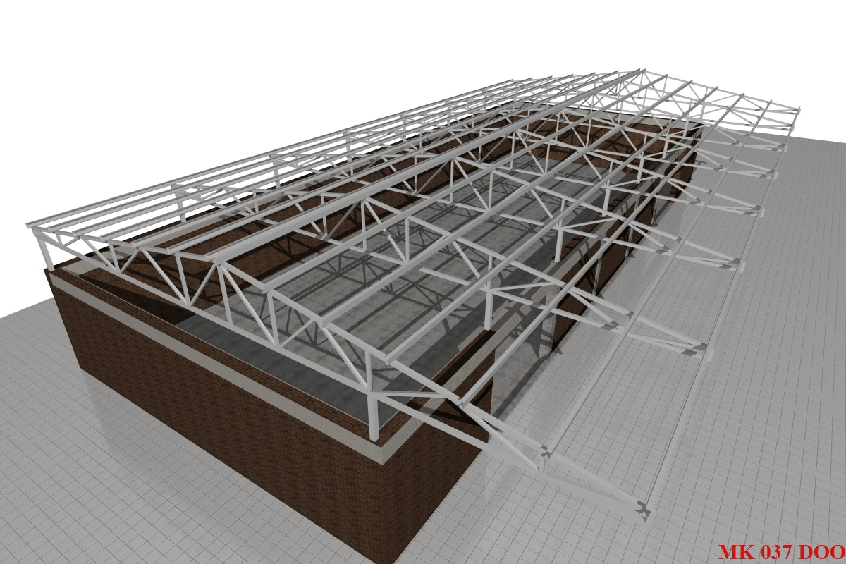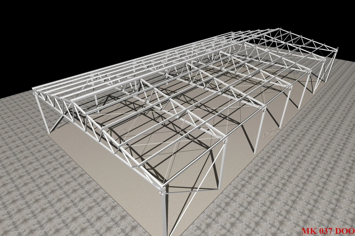 Čelične konstrukcije izgrađene od rešetkastih krovnih nosača u praksi su se pokazale kao najracionalnije konstrukcije u pogledu utroška materijala, a samim tim su i najekonomičnije. Na našim prostorima su najčešći tip konstrukcija i imaju široku primenu u viskogradnji gde je potrebno savladati veće raspone na brz i efiikasan način. Izrađuje se najčešće od kutijastih hladno oblikovanih profila. Veze se ostvaruju zavarivanjem ili vijačno (montažne konstrukcije). Konstrukcija može biti bojena i cinkovana.